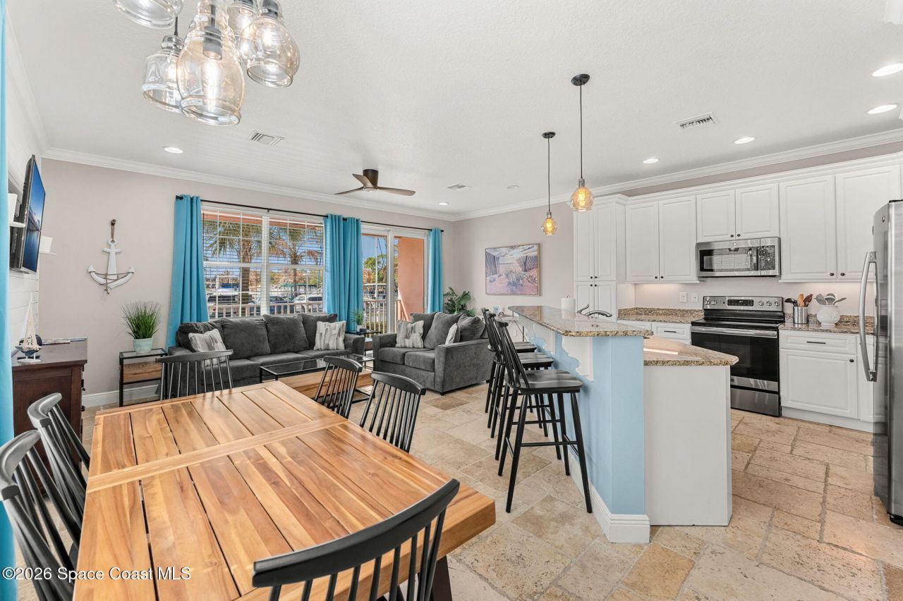 Tropical Paradise Awaits in This Key West-Inspired Townhome!Welcome to your dream home in an exclusive waterfront community, where every day feels like a vacation. Fresh paint, new furniture, updated! This beautifully designed 2-story FULLY FURNISHED townhome blends the charm of Key West architecture w/ modern luxury, offering 3 spacious bedrooms and 2.5 baths, perfect for full-time living or a weekend getaway.Step inside to find an open floor plan w/ coastal touches + upscale finishes throughout. The gourmet kitchen features SS appliances, granite countertops, flowing seamlessly into the dining + living areas-ideal for entertaining or simply relaxing.Outside, enjoy the best of waterfront living! This community boasts a private marina-perfect for boating enthusiasts along with a resort-style pool, spa, and an on-site restaurant where you can savor local cuisine and live music.Navigable canal to Indian River, Banana River + direct ocean access.