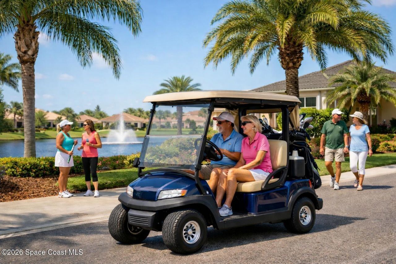 Welcome to refined living in the 24-hour guard-gated active adult community of Heritage Isle! This spacious, beautifully maintained 3BR/2BA home features neutral tones, vaulted ceilings & tile flooring throughout-no carpet! The light-filled eat-in kitchen is accented with plantation shutters, while the inviting sunroom offers peaceful views of greenspace with no neighbors directly behind you. The primary suite is thoughtfully designed with handicap-accessible features, including a roll-in shower & grab bars for added comfort & ease. Accordion shutters provide peace of mind during storm season. Roof replaced in 2017. Enjoy exceptional resort-style amenities: an expansive clubhouse with a café, heated pool and spa, tennis and pickleball courts, a fitness center, a vibrant calendar of social activities & much more! Ideally located in Viera near healthcare facilities, golf courses, premier shopping & dining. With easy access to I-95, Orlando & Port Canaveral are less than an hour away!